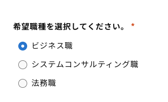 エントリーフォームでは希望職種を選択いただきます。エントリーフォームにてビジネス職を選択した場合、ビジネス職の中で「興味のある役割」をお伺いします。