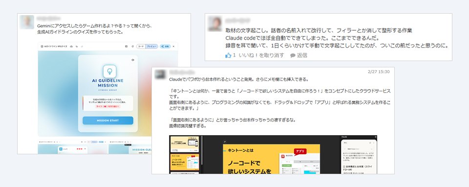 たくさんの社員が日報・分報で試したことを気軽にオープンに発信しています。