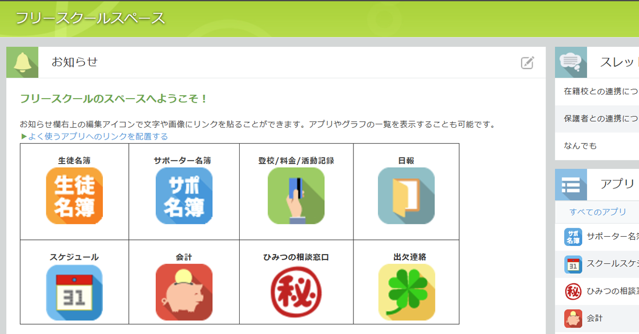 小学生を対象にフリースクールを運営。少人数クラスでの学びを重視しながら体験型教育を提供しています。また、kintone等のツールを活用して日々の学びを共有し、家庭と一体となって子どもの成長を支えます。